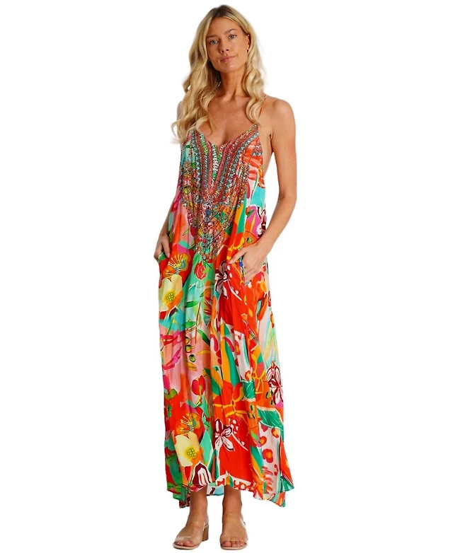 La Moda Clothing Women's Maxi Tropical Print Halterneck Dress