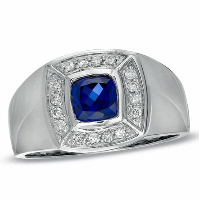 Men's Square-Cut Blue Lab-Created Sapphire & Diamond Ring 1/4 ct tw 10K White Gold