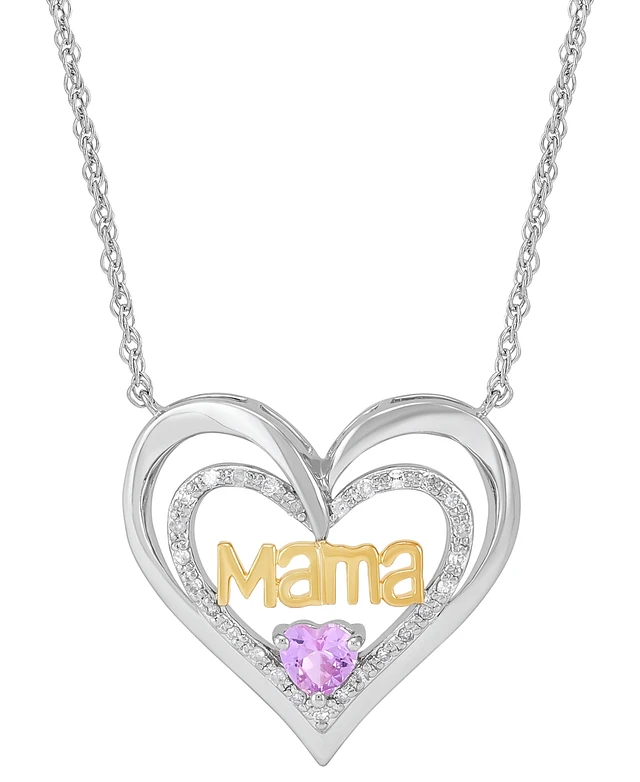 Lab-Created Pink Sapphire (1/3 ct. t.w.) & Diamond (1/10 ct. t.w.) Mama Heart Pendant Necklace in Rhodium-Plated & 14k Yellow Gold-Plated Sterling Sil