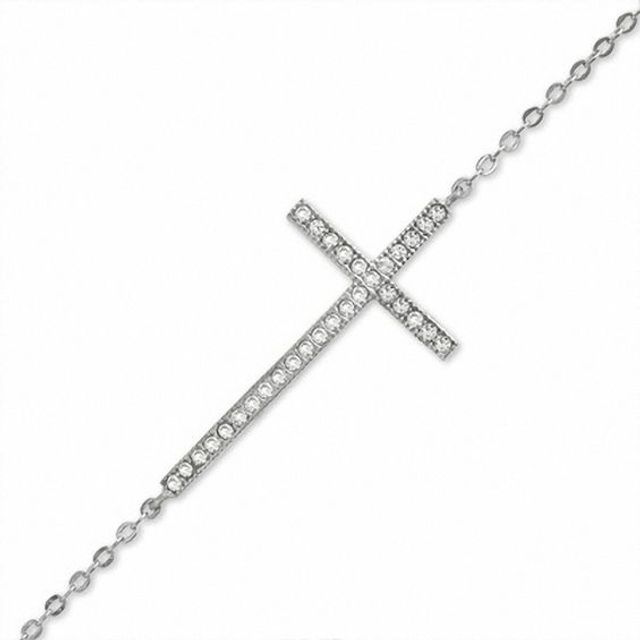 Lab-Created White Sapphire Sideways Cross Bracelet in Sterling Silver - 7.25"