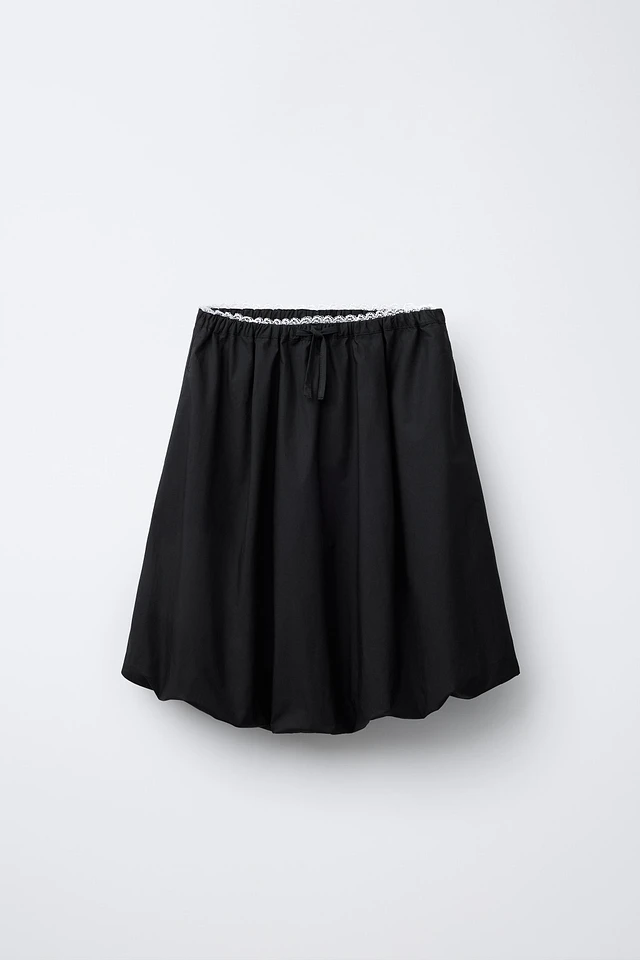 LACE TRIM BALLOON MIDI SKIRT