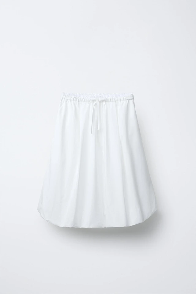 LACE TRIM BALLOON MIDI SKIRT