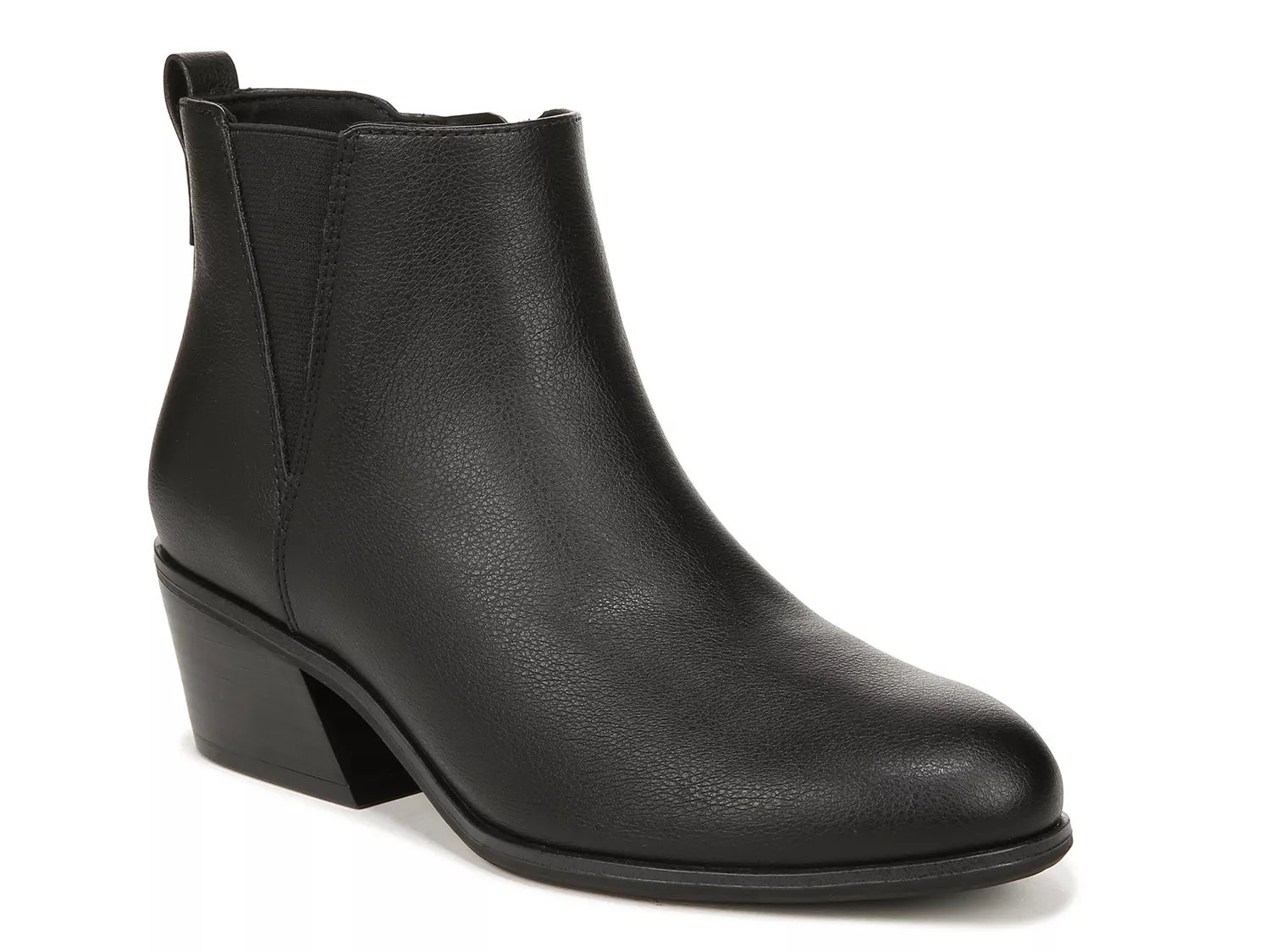 The versatility of the Lacey bootie from Dr. Scholl's can almost blend well with a range of outfits. The sustainable ankle bootie has an EVA insole with BLOOM foam that resists microbes and foul odor while providing eco-friendly comfort. An inside zipper and outside elastic insert offer wearing convenience.
