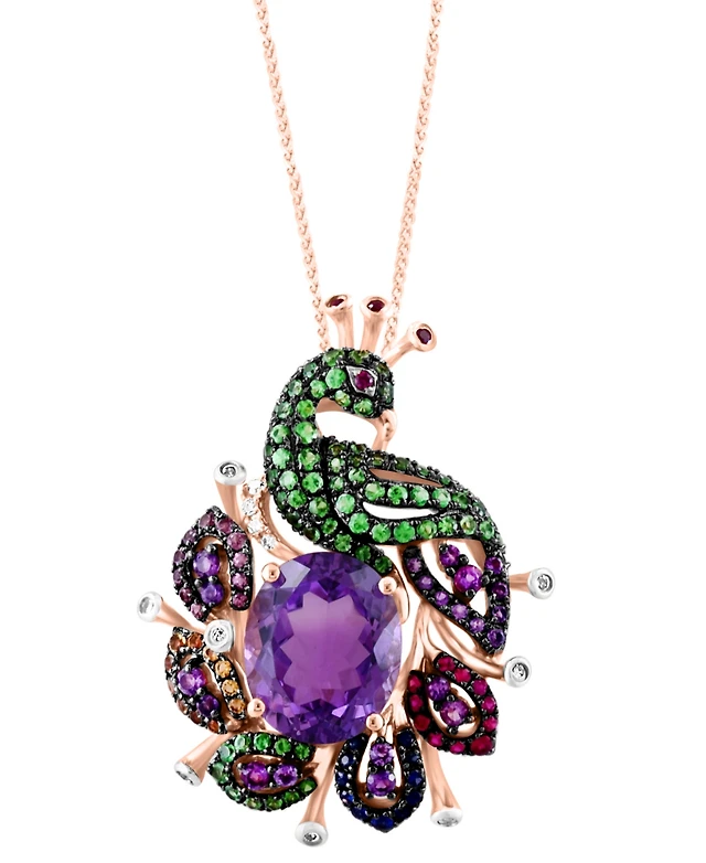 Lali Jewels Multi-Gemstone (4-1/3 ct. t.w.) Peacock Pendant Necklace in 14k Rose Gold, 16" + 2" extender
