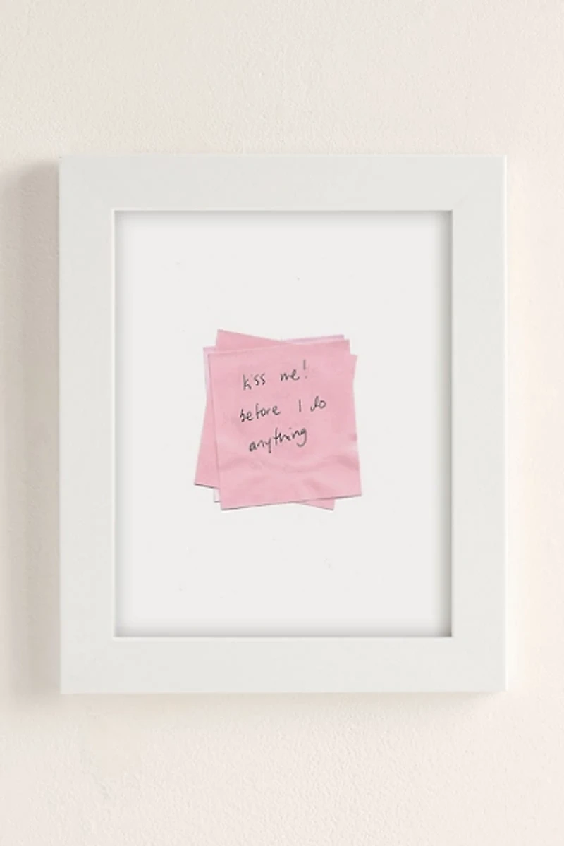 Art print by Lane Hummel featuring a sweet request written across pink paper. Printed on archival paper made from cotton pressed in Italian mills, this high-quality art print is available in sizes and frames just right for your space. First select your frame (or go frameless), then select your size.