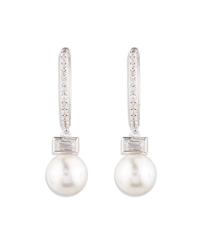 Lauren Ralph Lauren Cubic Zirconia & Imitation Pearl Sterling Silver Hoop Earrings