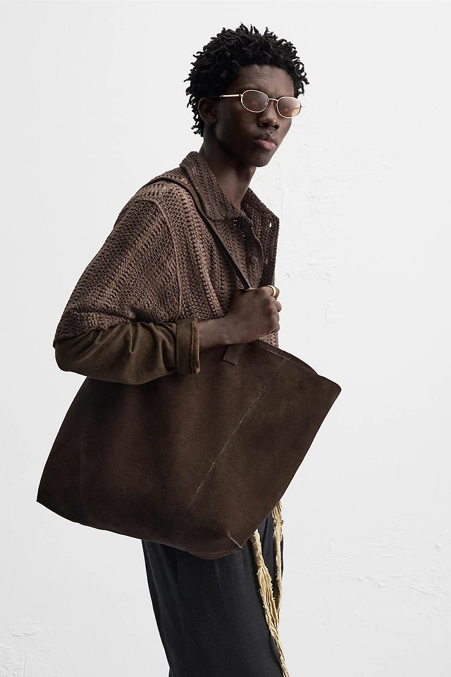 WOVEN SPLIT LEATHER SHOPPER BAG