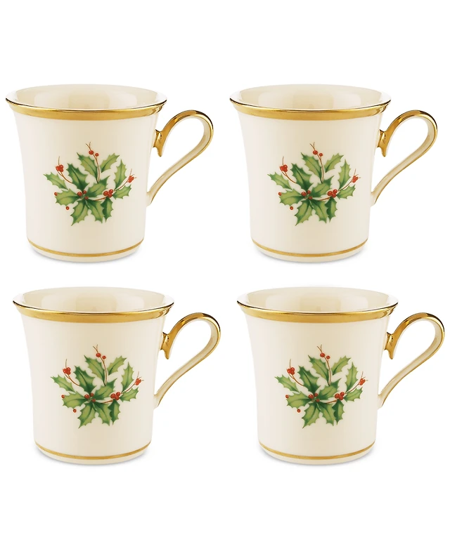 Lenox Holiday Plaid Gold-Trimmed Mugs, Set of 4