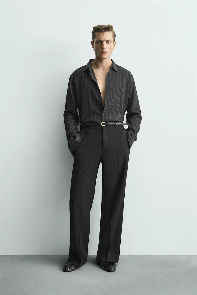 LIMITED EDITION SHINY STRIPED FLOWY SHIRT