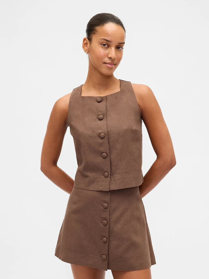 Linen-Blend Button-Front Shell Top in Bloomington, MN