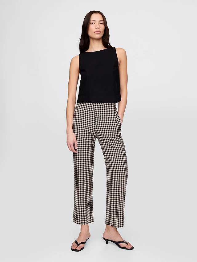 Mid Rise Eyelet Easy Wide-Leg Pants