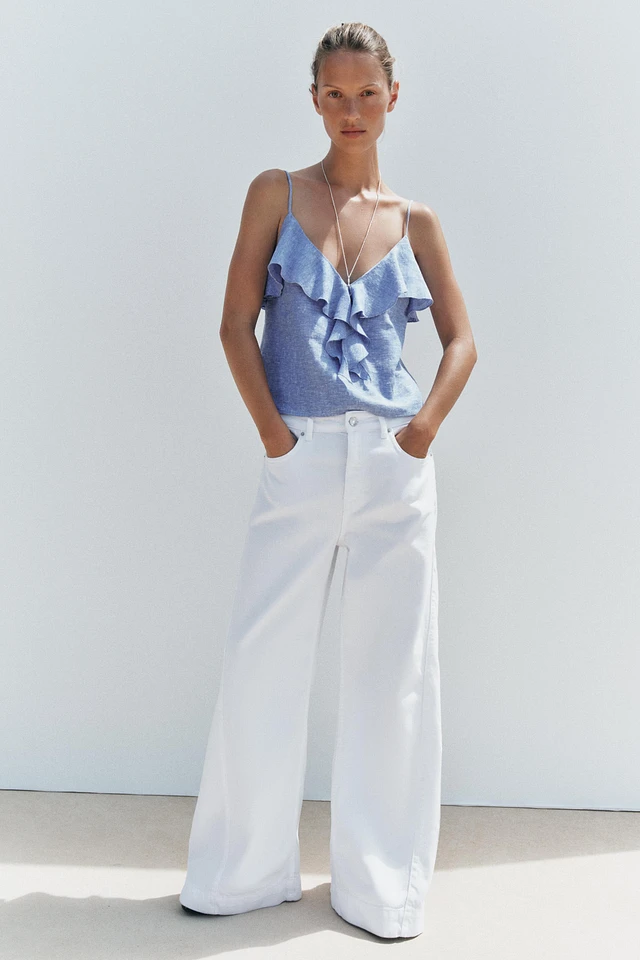 LINEN RUFFLED STRAPPY TOP