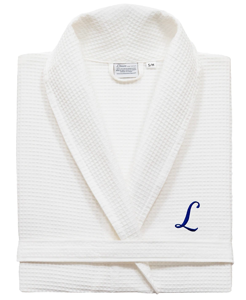 Linum Home Personalized Unisex Embroidered Turkish Cotton Waffle Weave BathrobeLinum Home Personalized Unisex Embroidered Turkish Cotton Waffle Weave Bathrobe