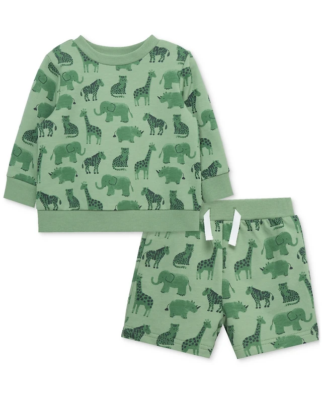 Little Me Baby Boys Safari Cotton Active Sweatshirt & Shorts, 2 Piece Set