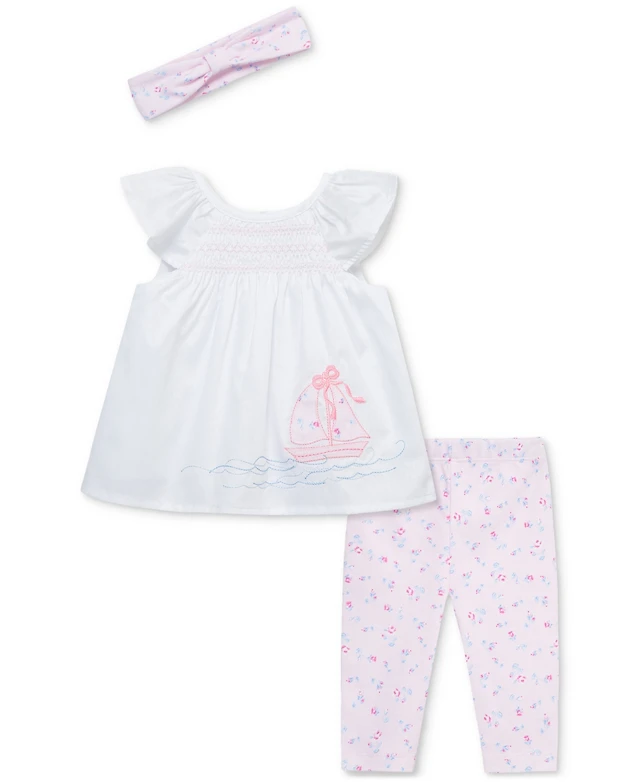 Little Me Baby Girls Rosy Breeze Cotton Tunic, Leggings & Headband, 3 Piece Set