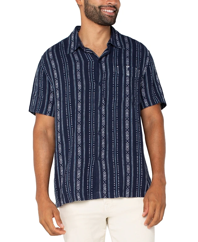 Liverpool Los Angeles Men's Short Sleeve Diamond Dash Print Button-Front Shirt