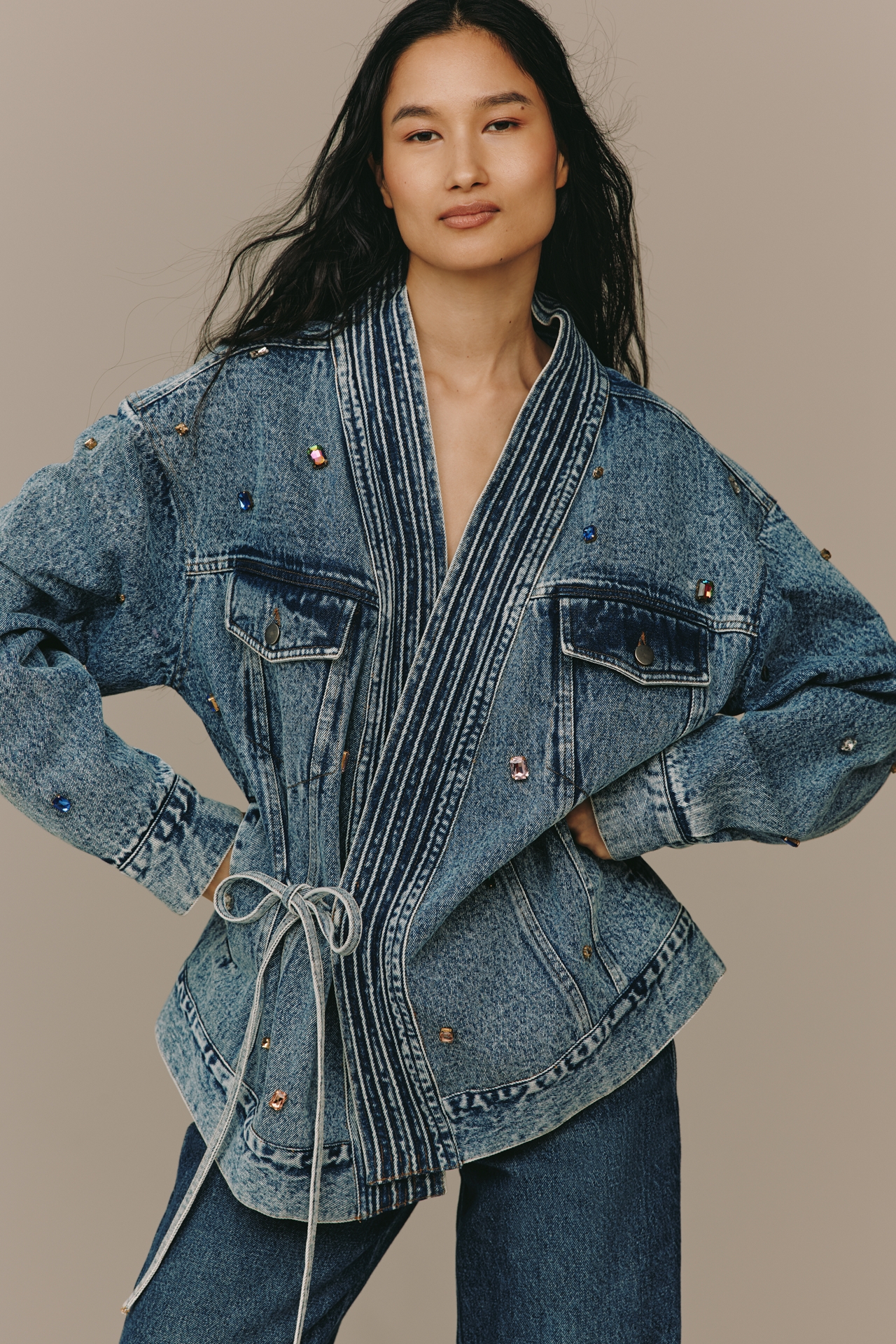 Llani x Anthropologie Embellished Denim Side-Tie Jacket
