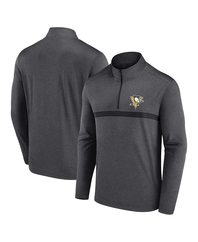 Men's Fanatics Heather Charcoal Pittsburgh Penguins Authentic Pro Quarter-Zip Pullover Top