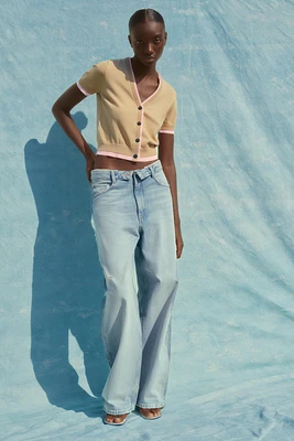 SHORT DRESS WITH CONTRASTING RIB TRIM