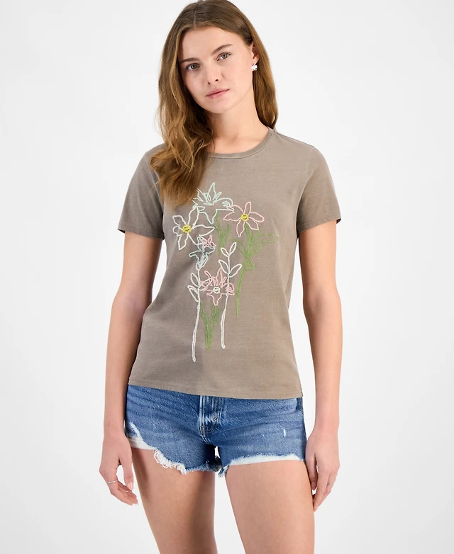 Lucky Brand Women's Embroidered Floral Classic Crewneck T-Shirt