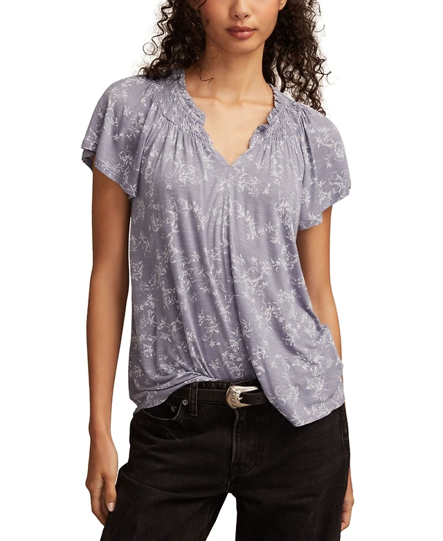 Lucky Brand Women's Embroidered Smocked Peasant Top