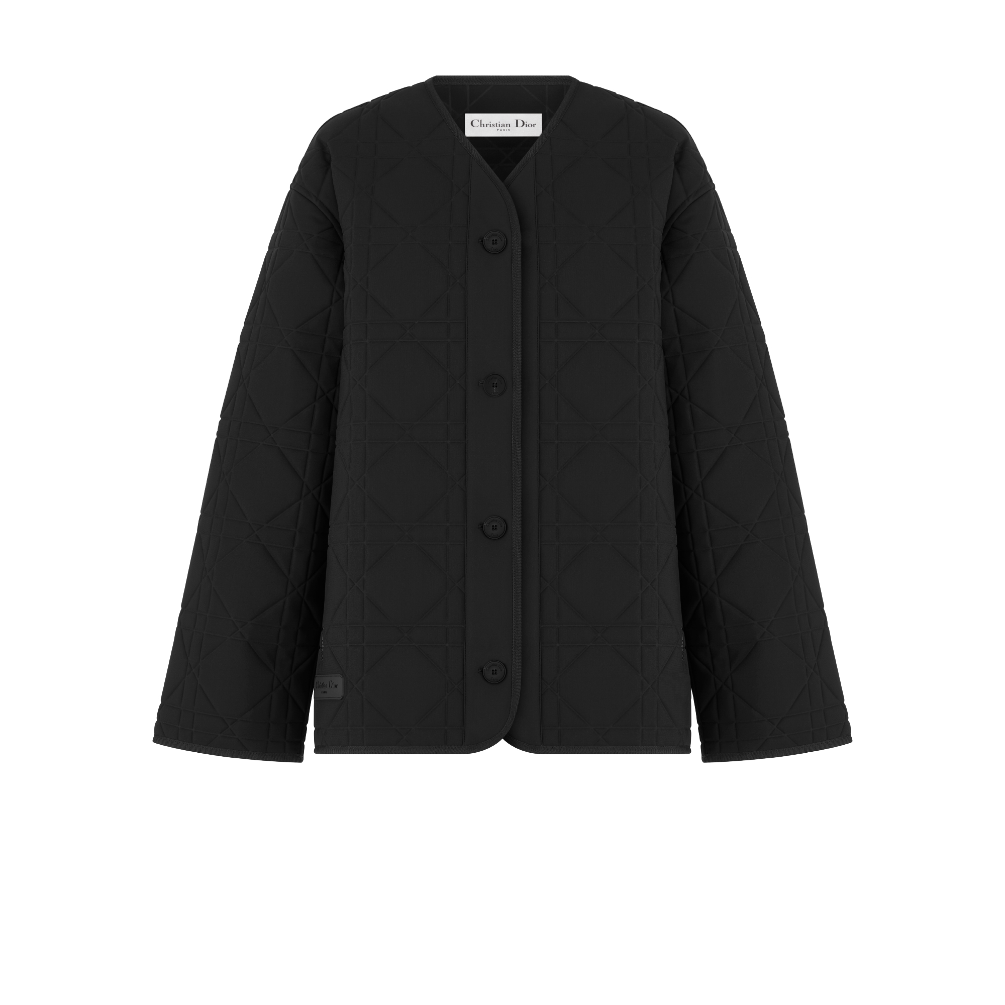 The Macrocannage blouson jacket revisits the iconic motif with a new high frequency technique. Crafted in ultra-lightweight black quilted technical taffeta, it is distinguished by a regular fit, button closure and V-neckline, as well as side zip pockets. Marrying refinement with a sportswear spirit, the jacket can be paired with a miniskirt from the season to complete a quintessential look. Tonal Christian Dior Paris rubber patch. Front button closure. Unlined. 73% polyamide, 27% elastane. Made in Italy