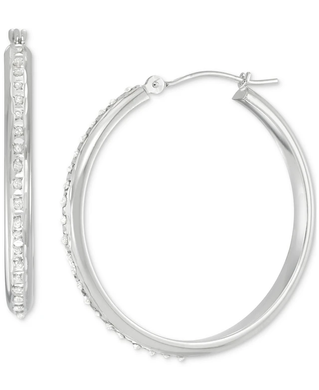Macy's Diamond Accent Fascination Inside Glitter Hoop Earrings in 10k White Gold or Yellow Gold
