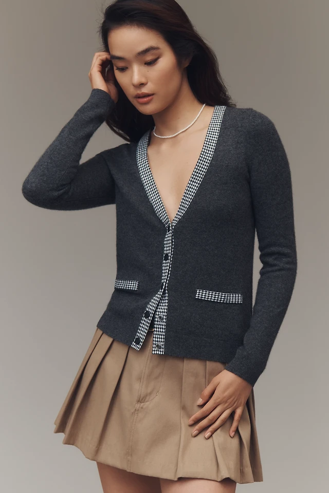Maeve Contrast-Trim Cashmere Cardigan Sweater