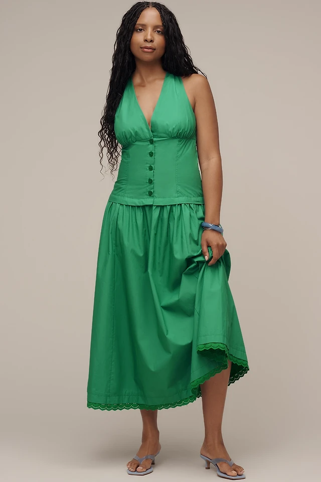 Maeve Halter V-Neck Drop-Waist Midi Dress
