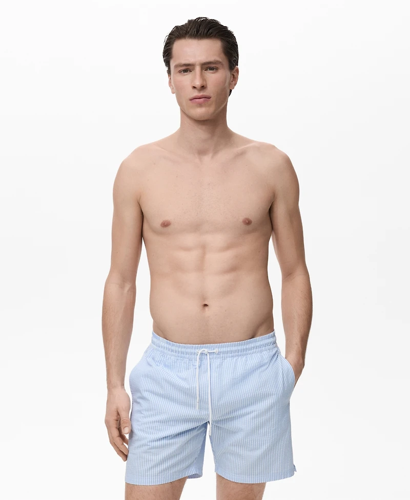Make waves in the Seersucker Swimming Trunks from Mango. Made from Seersucker fabric, these trunks feature two side pockets.
