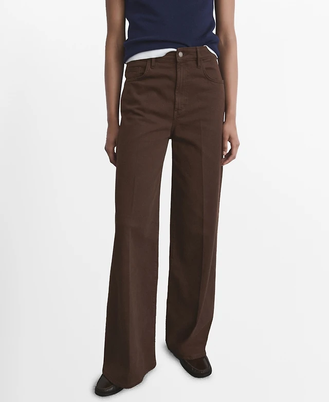 Mango Women's Stitching Detail High-Waisted Wide-Leg Jeans