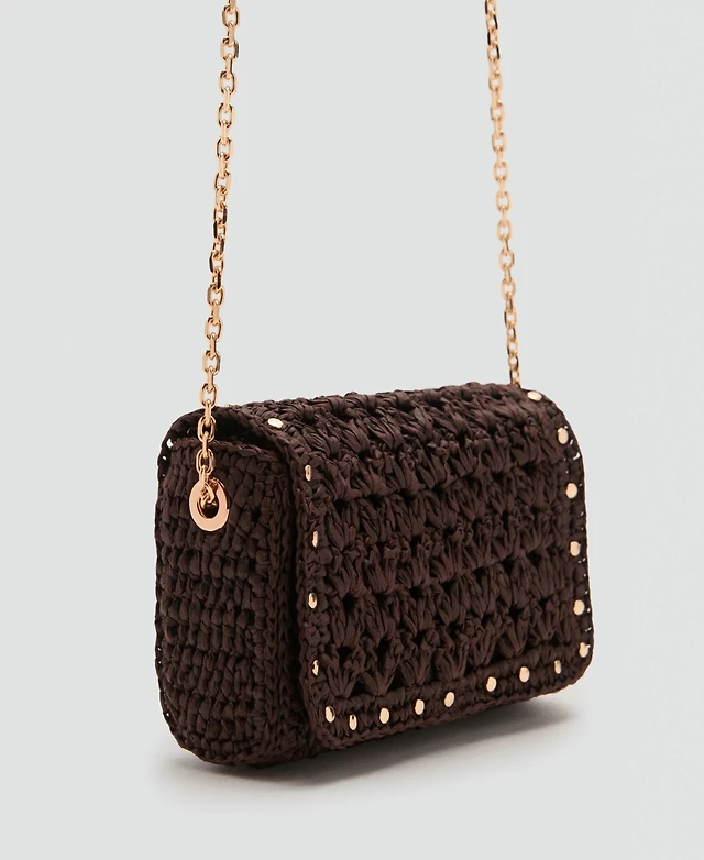 Mango Women's Studs Natural Fiber Shoulder Bag
