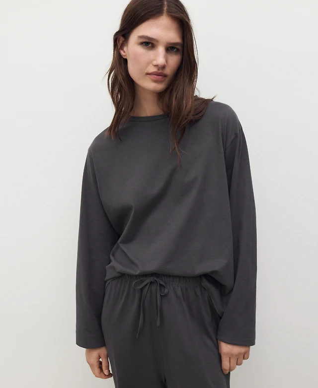 Mango Women's Two-Piece Plain Cotton Pajamas