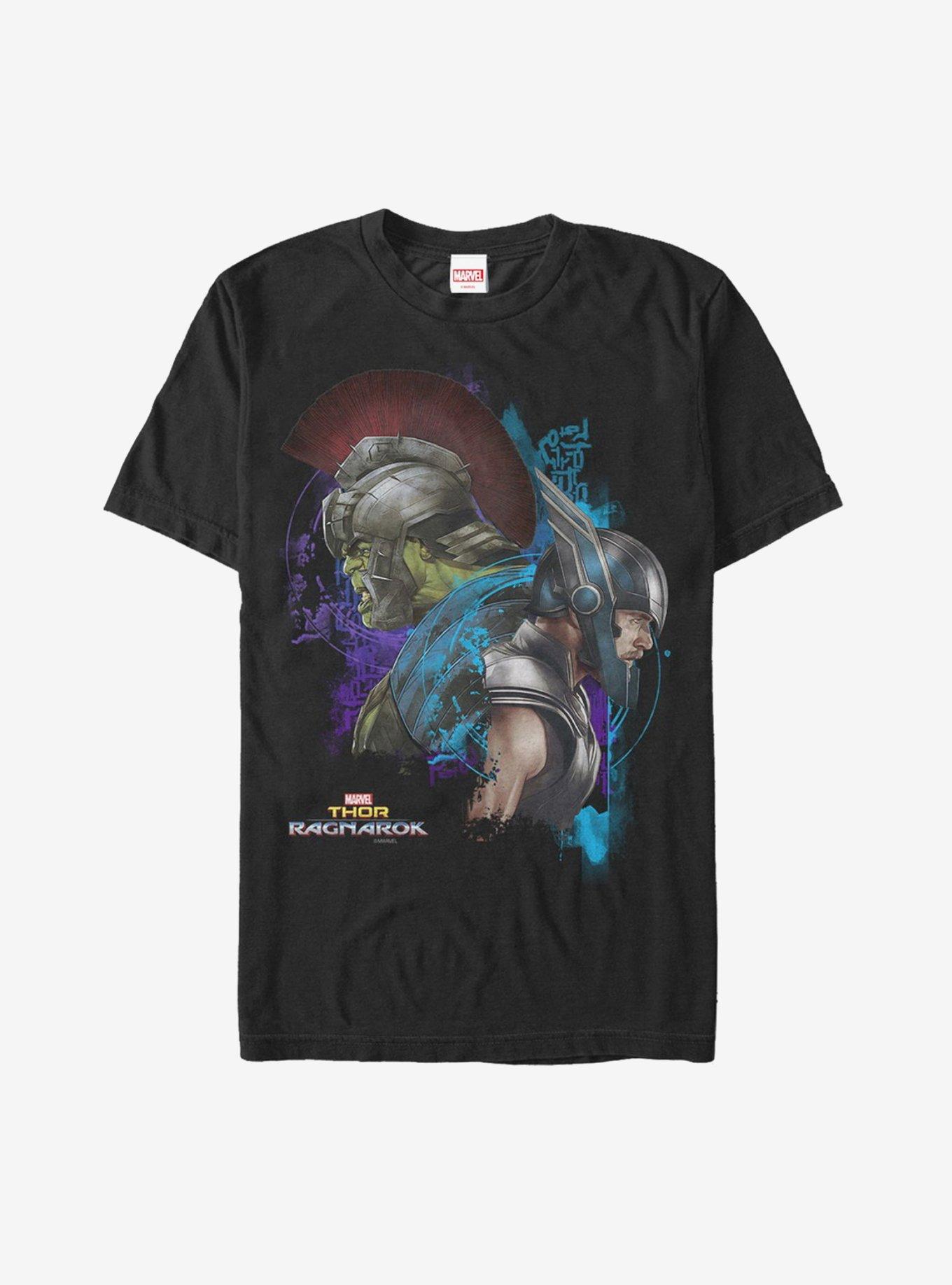 Thor may not like fighting for Grandmaster, but he's still pretty excited about seeing his old friend the Hulk and the Marvel Thor: Ragnarok Friend Fight Black T-Shirt! Thor and Hulk stand back-to-back, wearing their gladiator garb on this black Ragnarok shirt! 100% Cotton.