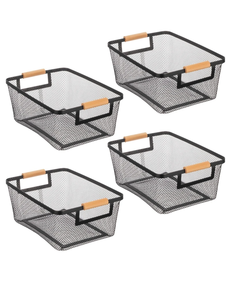 mDesign Metal Wire Pantry Basket with Wood Handles - Set of 4mDesign Metal Wire Pantry Basket with Wood Handles - Set of 4mDesign Metal Wire Pantry Basket with Wood Handles - Set of 4