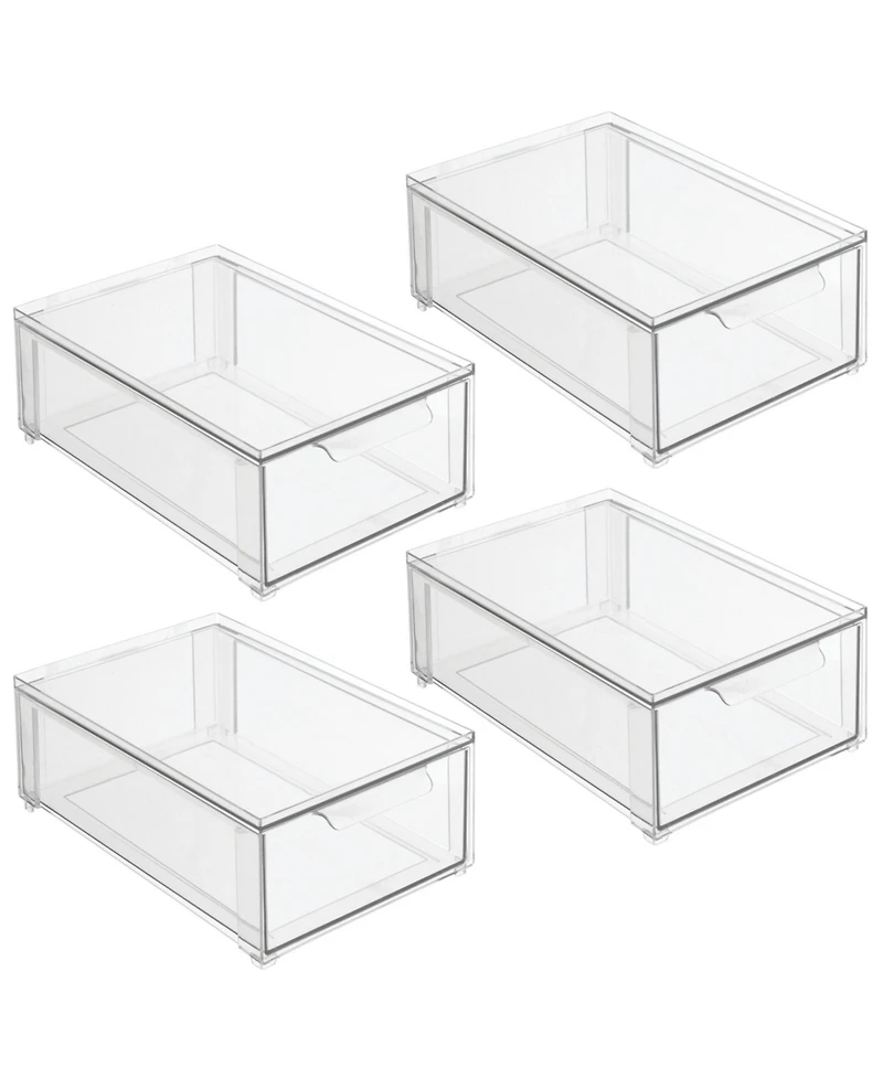 mDesign Stackable Pull-Out Sliding Storage Drawer - Set of 4 - Clear