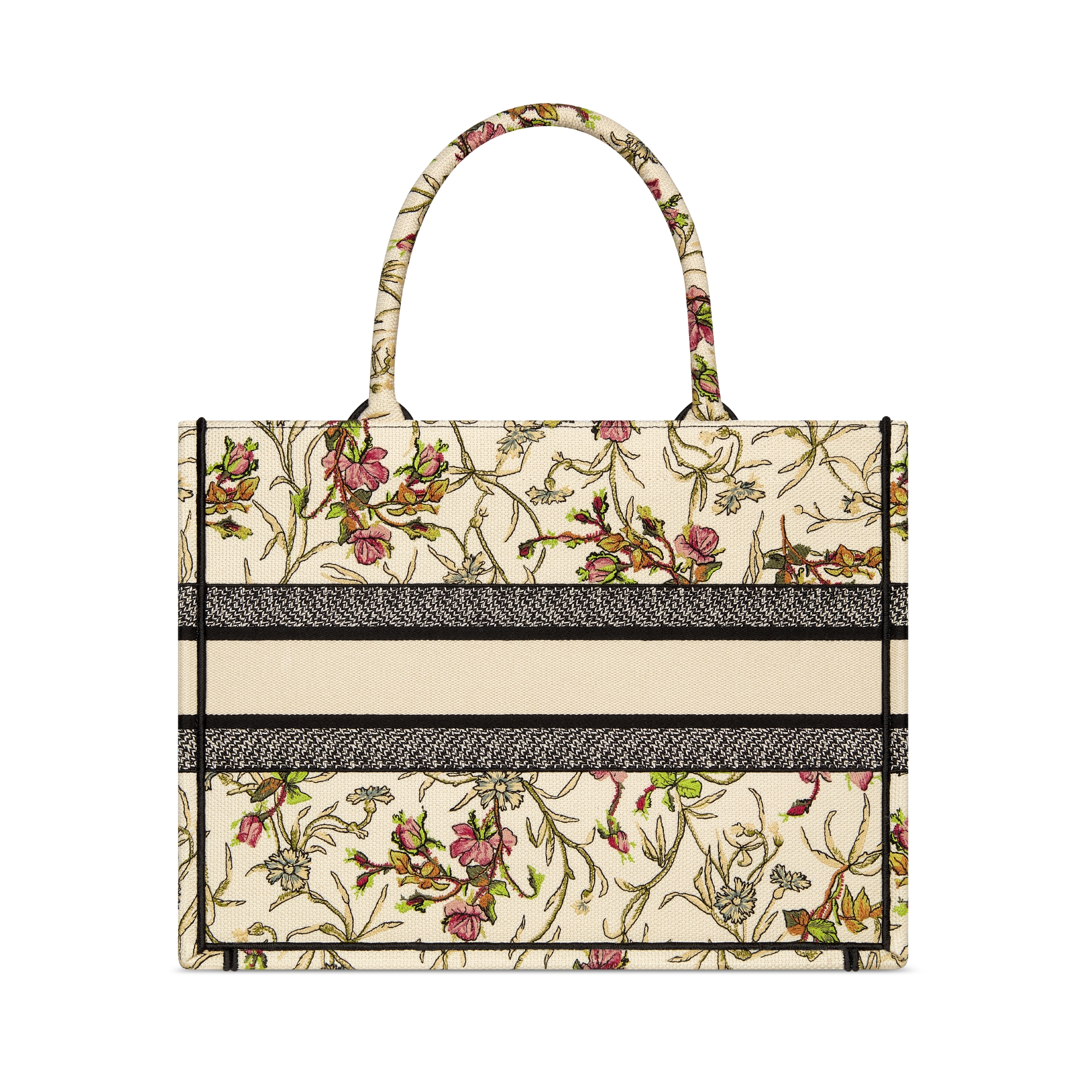 Introduced by Maria Grazia Chiuri, Creative Director of Christian Dior, the Dior Book Tote has become a staple of the Dior aesthetic. Designed to hold all the daily essentials, it is fully embroidered with an ecru multicolor Lumière de Rose motif, showcasing Mr. Dior's beloved roses delicately interlaced with cornflowers in an embodiment of love and timeless beauty. Adorned with the Christian Dior Paris signature on the front, the medium tote exemplifies the House's savoir-faire and may be carried by hand or worn over the shoulder. Main composition: cotton. Christian Dior Paris signature on the front. Dust bag included. Made in Italy