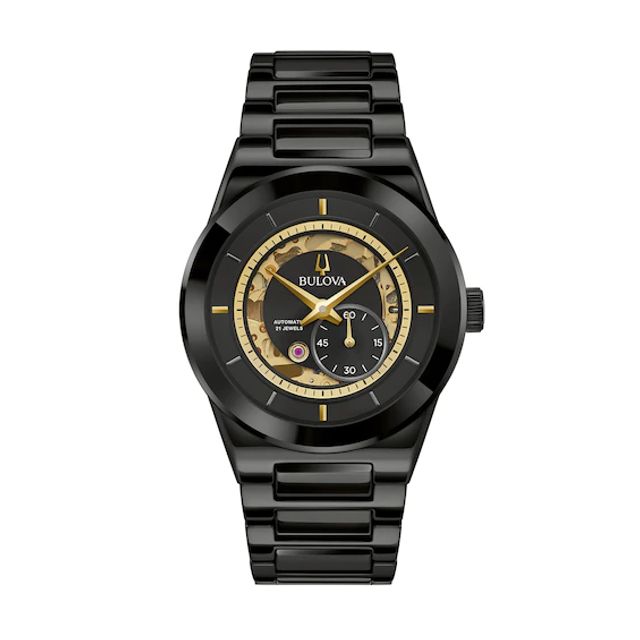 Men's Bulova Automatic Black IP Watch with Skeleton Dial (Model: 98A147)