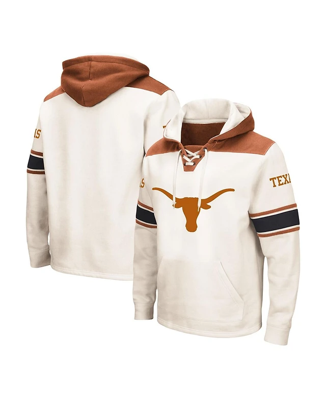 Men's Colosseum Cream Texas Longhorns Big and Tall Hockey Lace-Up Pullover Hoodie