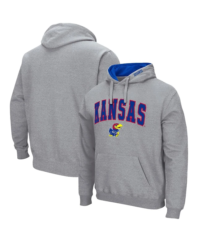 Men's Colosseum Heathered Gray Kansas Jayhawks Arch and Logo 3.0 Pullover Hoodie