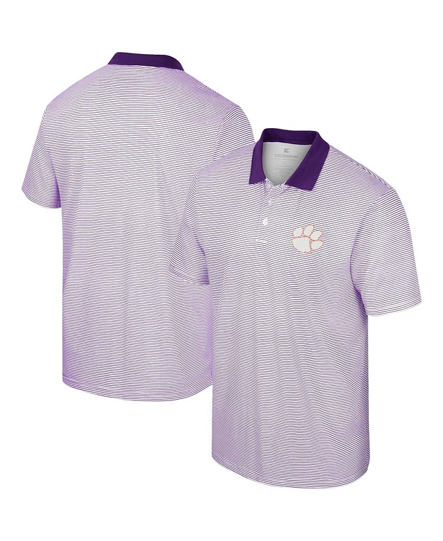 Men's Colosseum Purple, White Clemson Tigers Print Stripe Polo Shirt