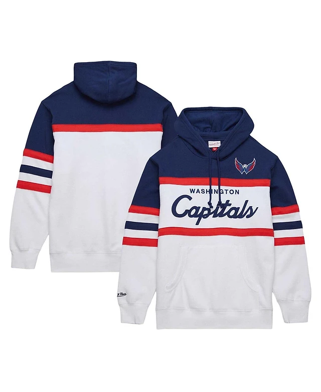 Men's Mitchell & Ness White, Navy Washington Capitals Head Coach Pullover Hoodie