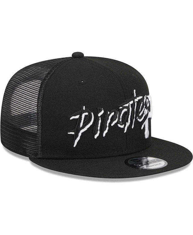New Era Men's Black Pittsburgh Pirates Bikini Bottom Trucker 9FIFTY Snapback Hat