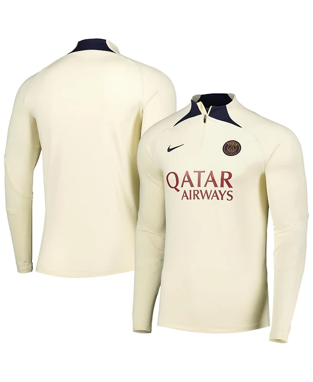 Men's Nike Cream Paris Saint-Germain Strike Drill 2023/24 Performance Quarter-Zip Long Sleeve Top