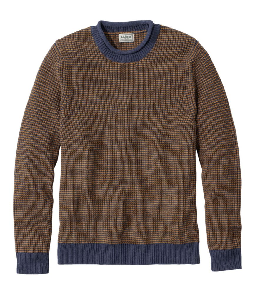 Men's Organic Cotton Waffle Sweater, Rollneck Crew, Stripe