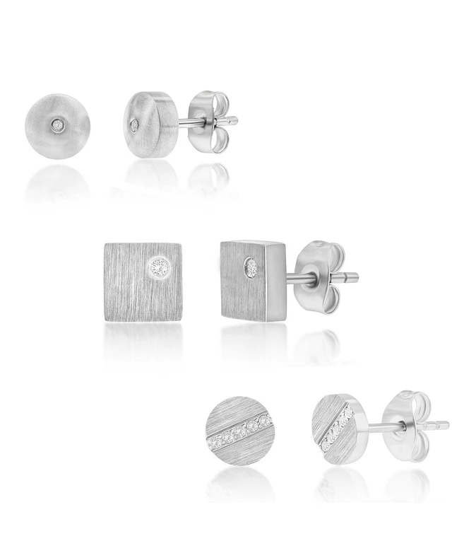 Metallo Stainless Steel, Set of 3 Cz Stud Earrings
