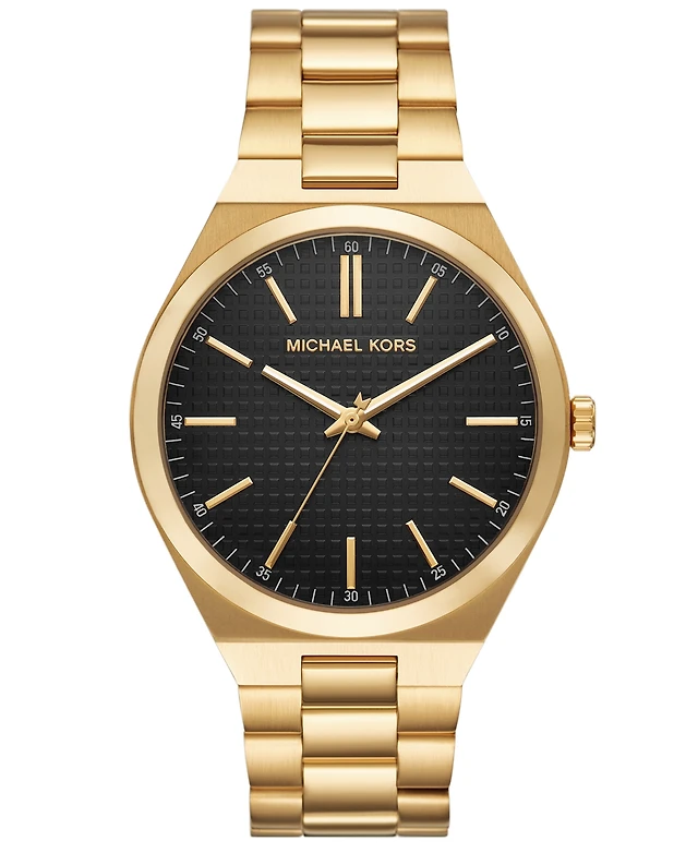 Michael Kors Men's Lennox Three-Hand Gold-Tone Stainless Steel Watch, 43mm