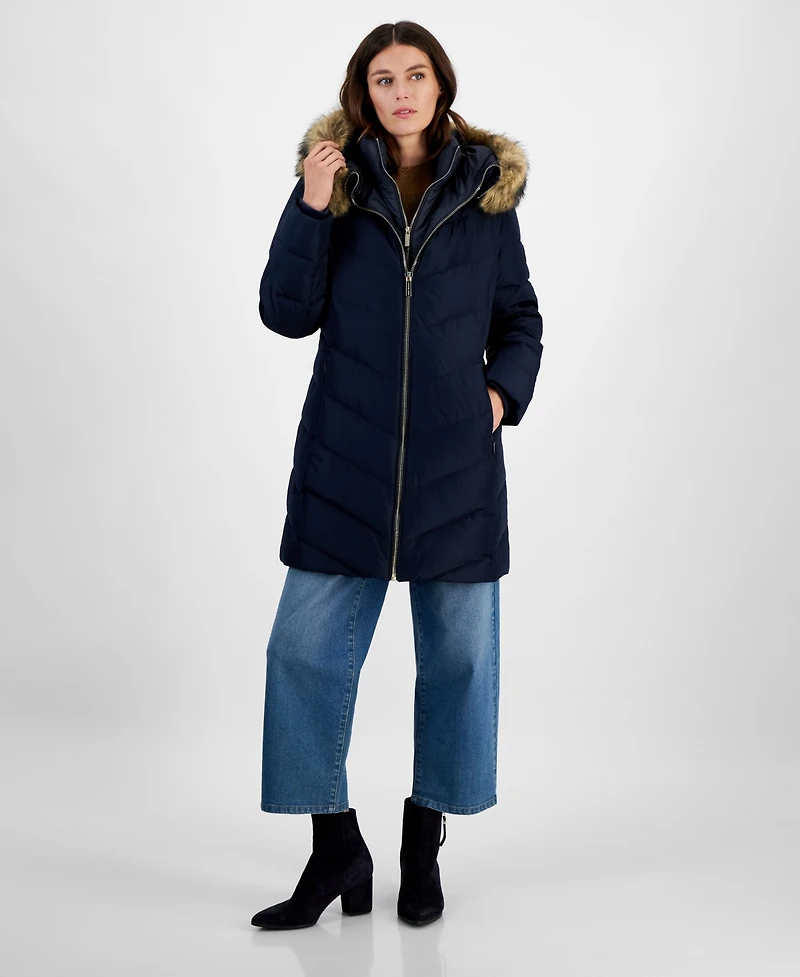 Michael Michael Kors Women's Bibbed Faux-Fur-Trim Hooded Puffer Coat