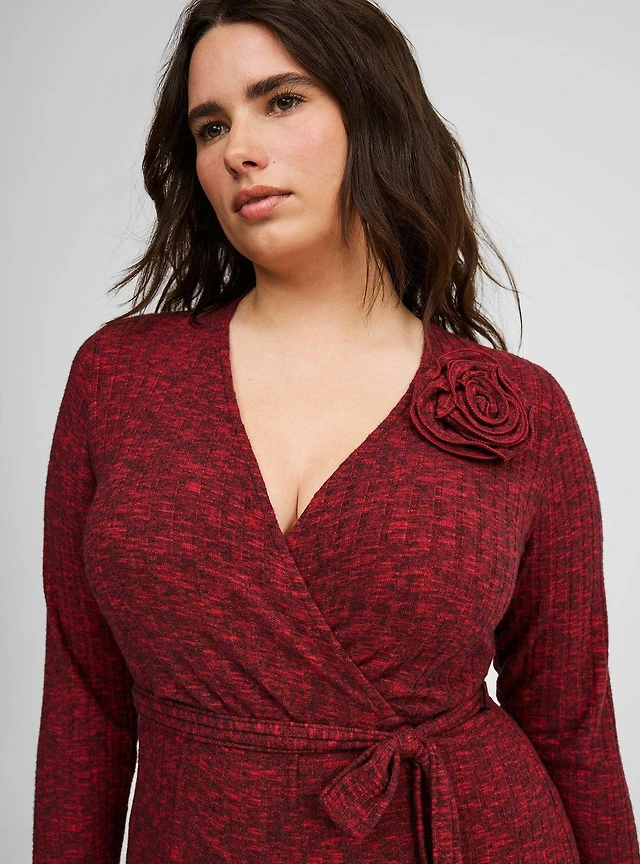 Mini Jersey Long Sleeve Collar Surplice Dress