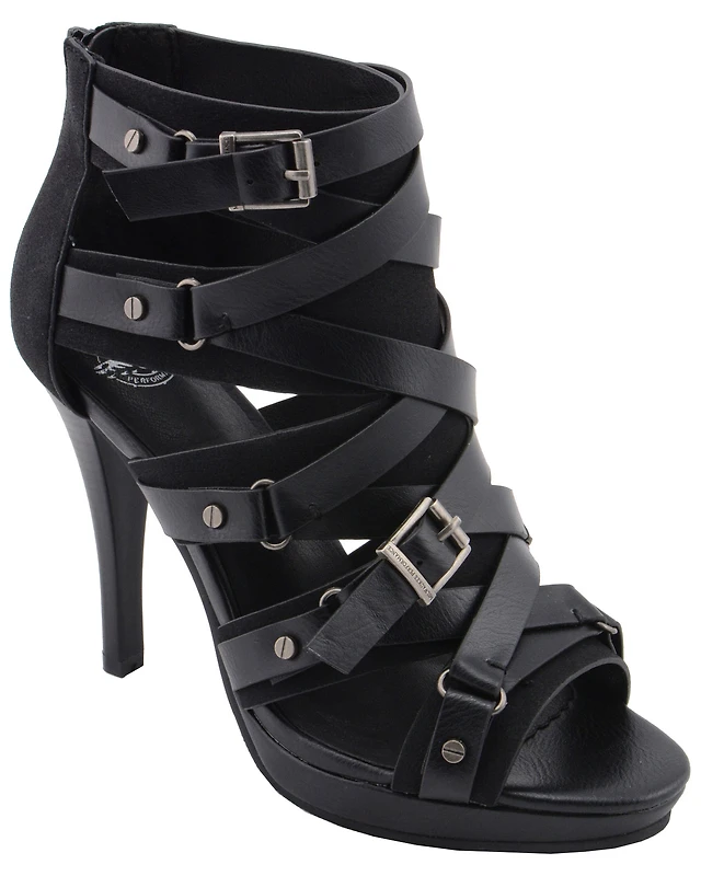Milwaukee Leather Women's Black Block Heel Strappy Sandals